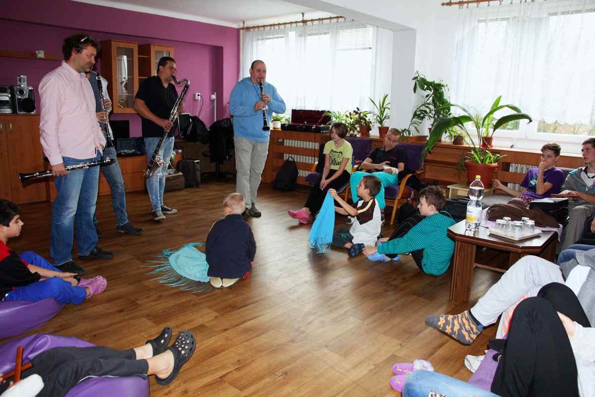 Členové hudebního uskupení Clarinet Factory s námi byli na výjezdu v dětských domovech poprvé a rovnou jsme společně navštívili děti v Budkově a Senožatech. Kromě toho, že jsme měli pro děti připravený v obou domovech hudební workshop, nechyběly ani kreativní dílny a výroba šperků. V Senožatech nám děti ukázaly taneční program, který mají připravený do jedné celorepublikové soutěže. Oba domovy jsme pozvali na 9. ročník festivalu OUT of HOME.